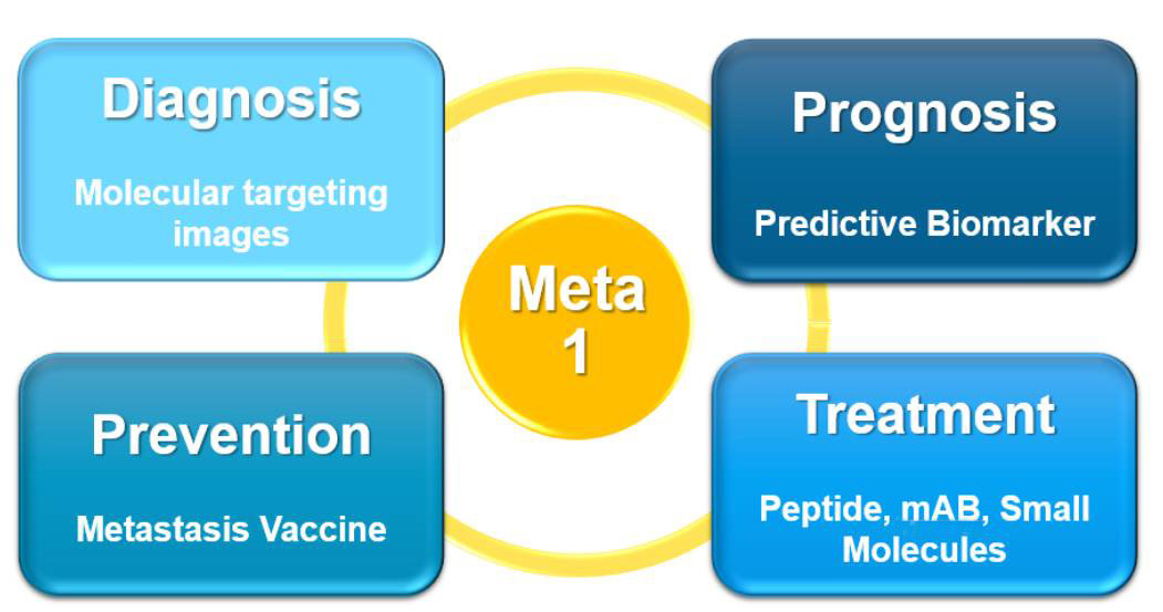 Meta1 is an important gene involving in cancer metastasis. Metagone Biotech Inc. is developing an immune therapy to regulate Meta1 as well as filing global patents. These goals are expected to be achieved simultaneously at Q3/16.
